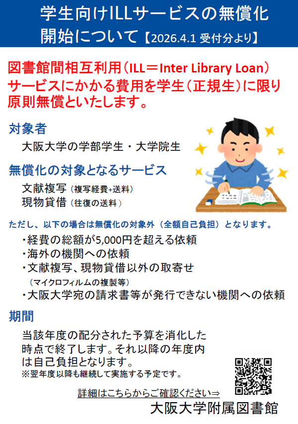 【お知らせ】2026度学生向け図書館間相互利用サービス(ILL)の無償化について