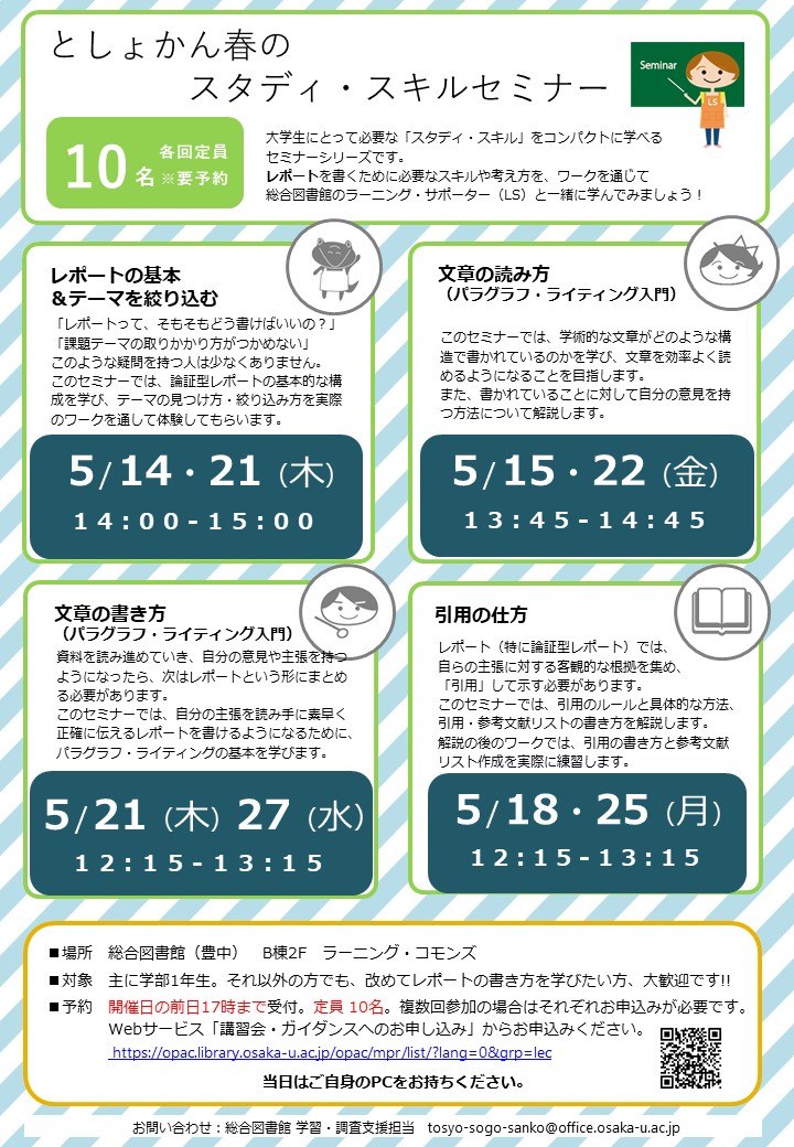 【講習会】としょかん春のスタディ・スキルセミナー(5/14~5/27)