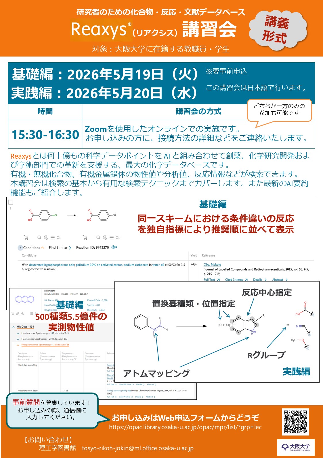 【講習会】Reaxys講習会(基礎編 5/19・実践編 5/20)