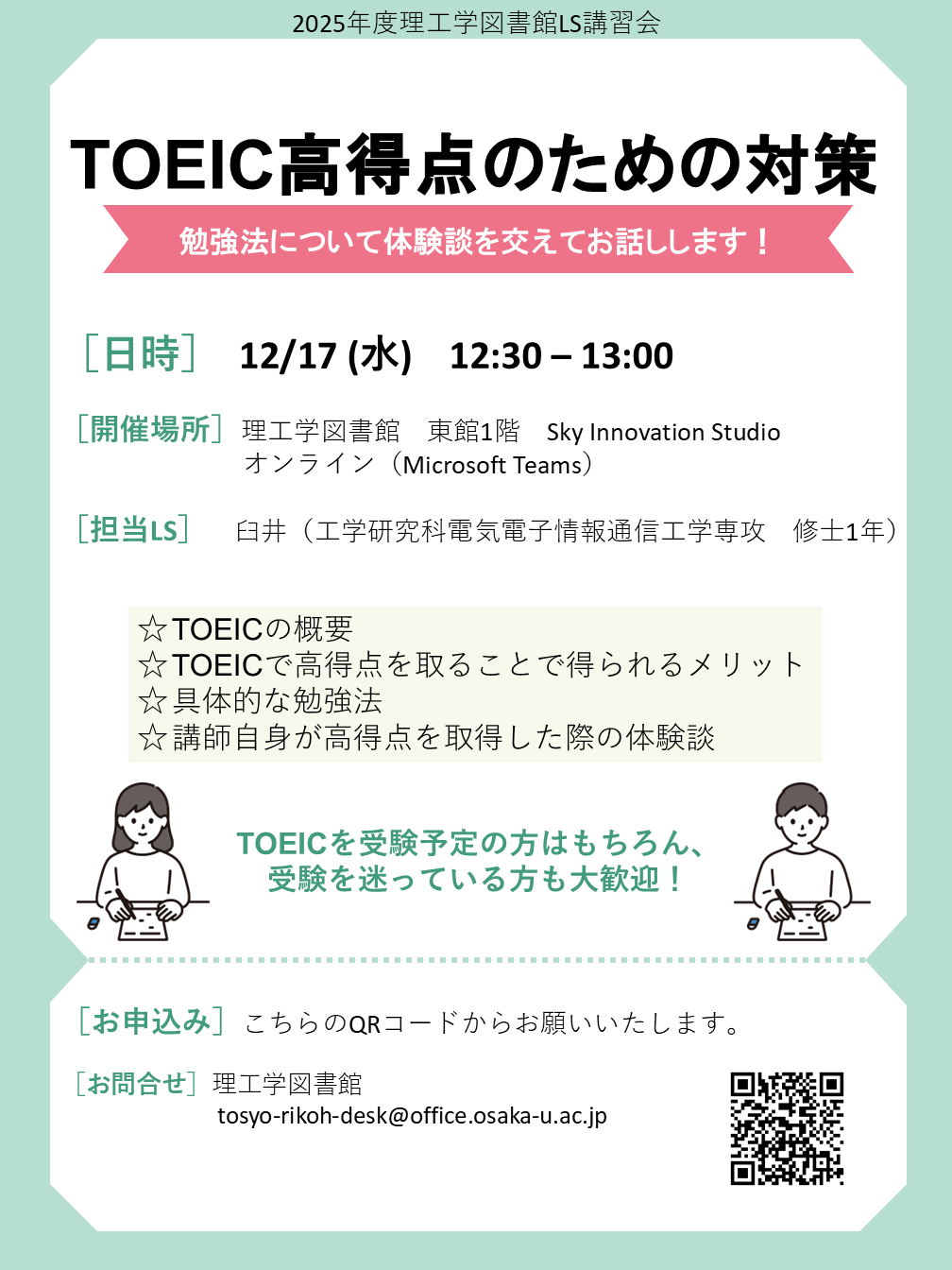 【講習会】TOEIC高得点のための対策(12/17)